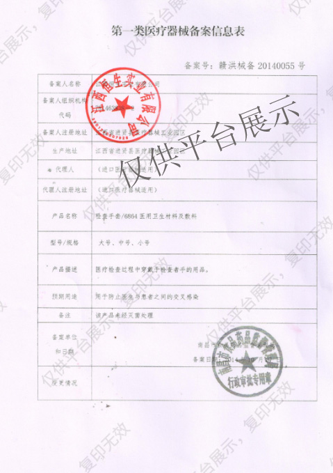 | 產(chǎn)品名稱 : | 一次性使用薄膜手套中號 |