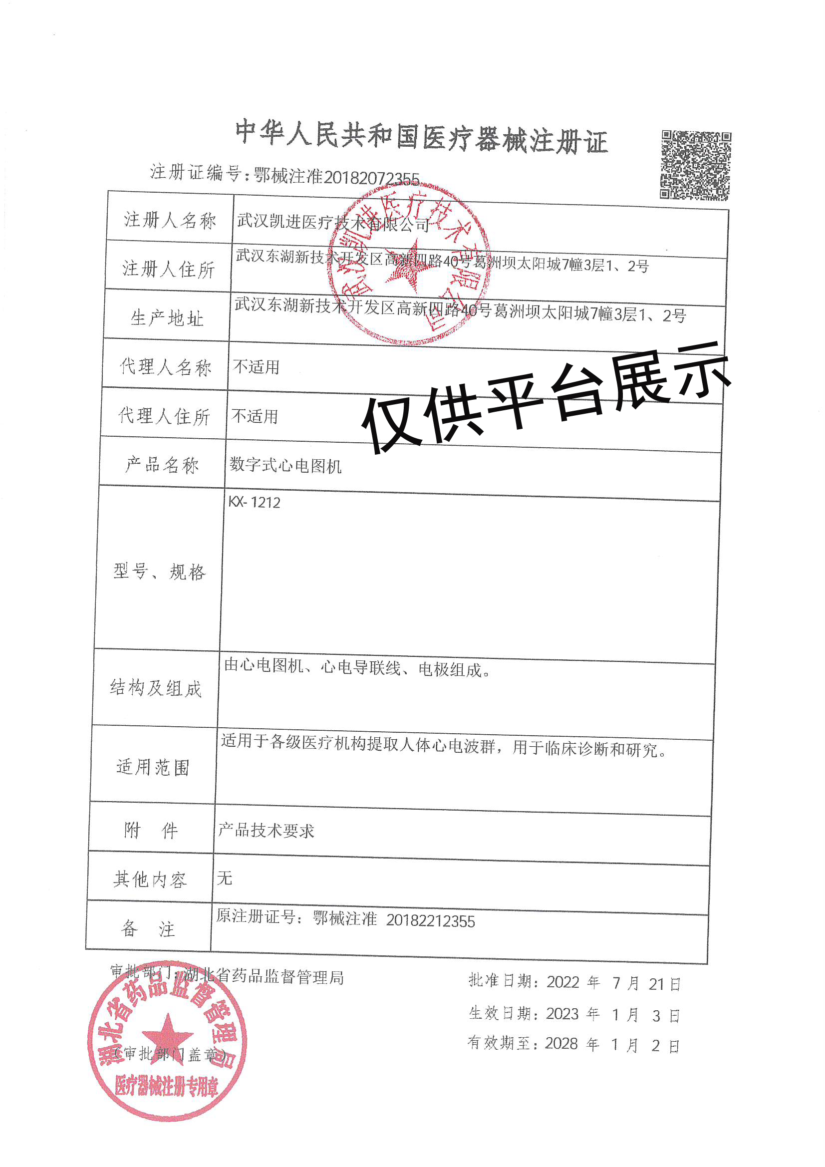 產(chǎn)品注冊(cè)號(hào):鄂械注準(zhǔn)20182212355