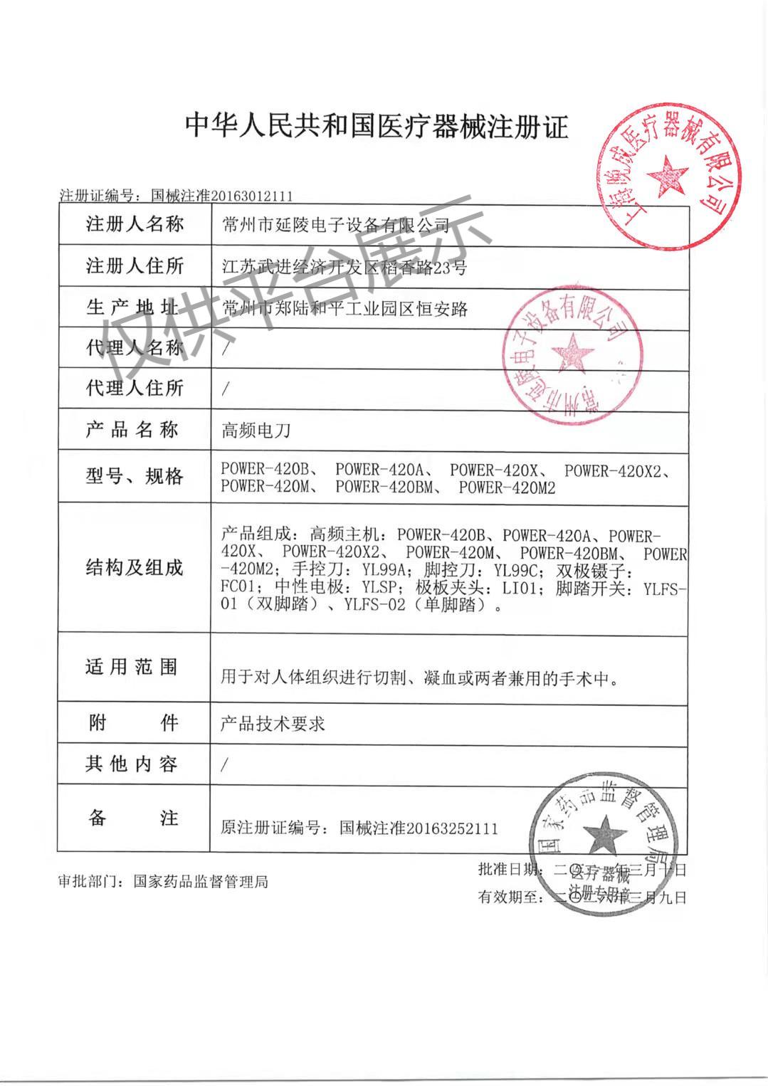 | 產(chǎn)品名稱 : | 延陵小型單極高頻電刀POWER-420M2 |