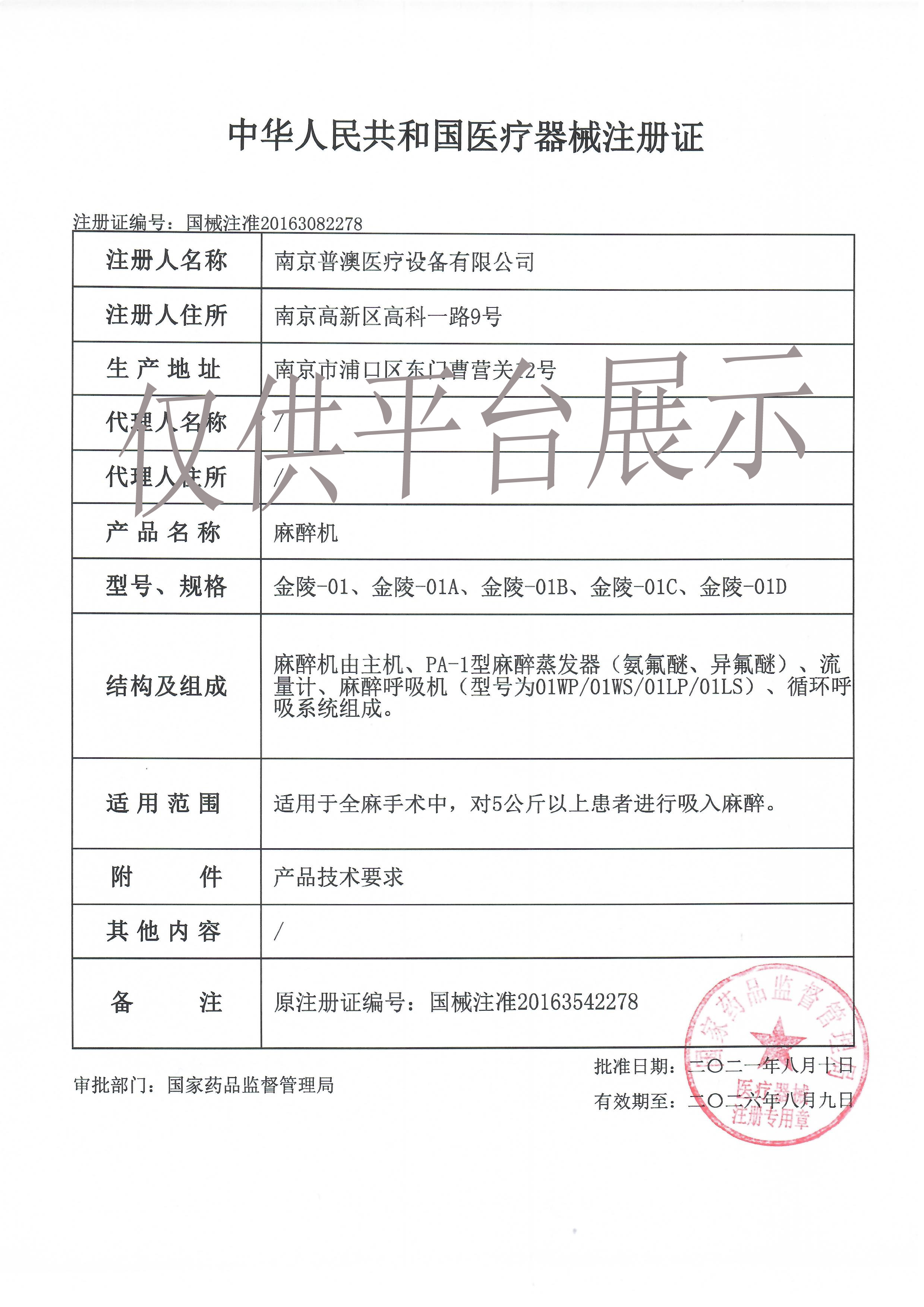 | 產(chǎn)品名稱 : | 南京普澳麻醉機金陵01B型 |