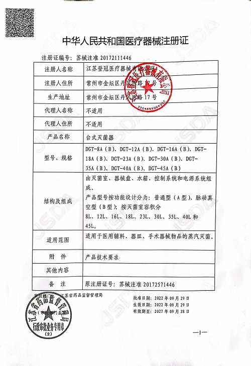 | 產(chǎn)品名稱 : | 登冠臺式滅菌器DGT-12B型 |
