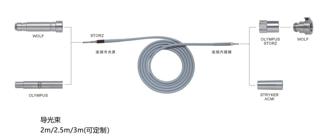6、兼容性好:即插式光源輸出孔,導(dǎo)光束接口國(guó)際通用,可與奧林巴斯、STORZ等多品牌 光纖無縫對(duì)接。