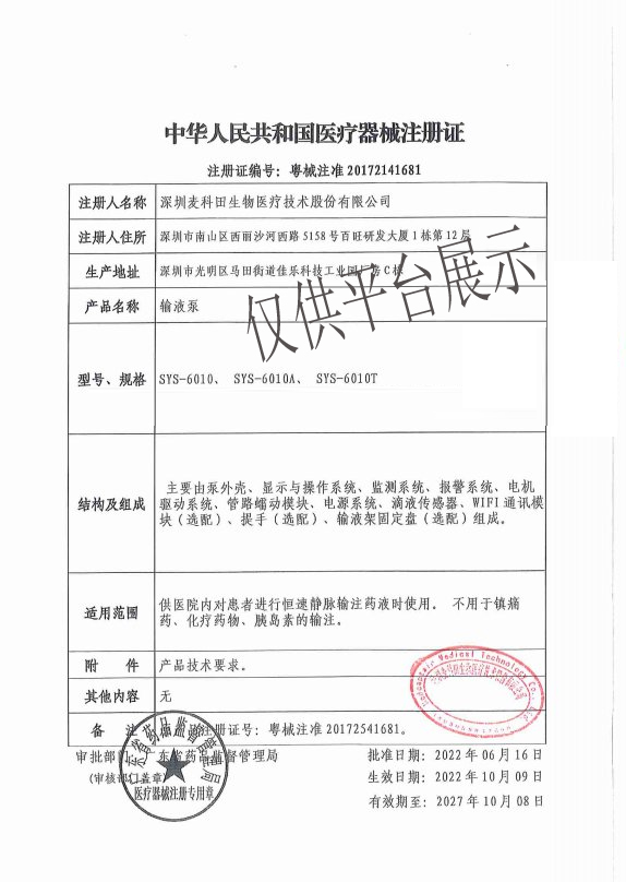 12、*耗材校準:支持符合標準的所有一次性使用輸液器,保證輸液精度;同時用戶可自定義其他符合標準的輸液器。