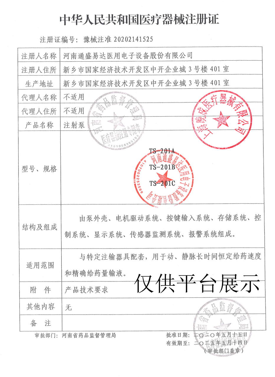 | 產(chǎn)品名稱 : | 通盛易達(dá) TS-201A單通道微量注射泵 |