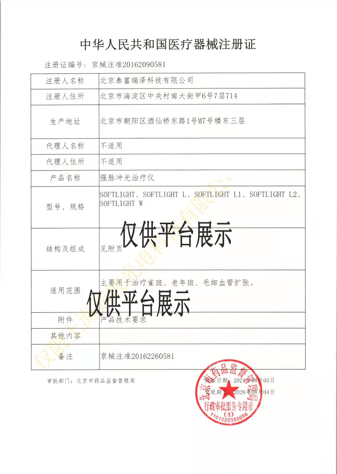 注冊(cè)證編號(hào):京械注準(zhǔn)20162260581