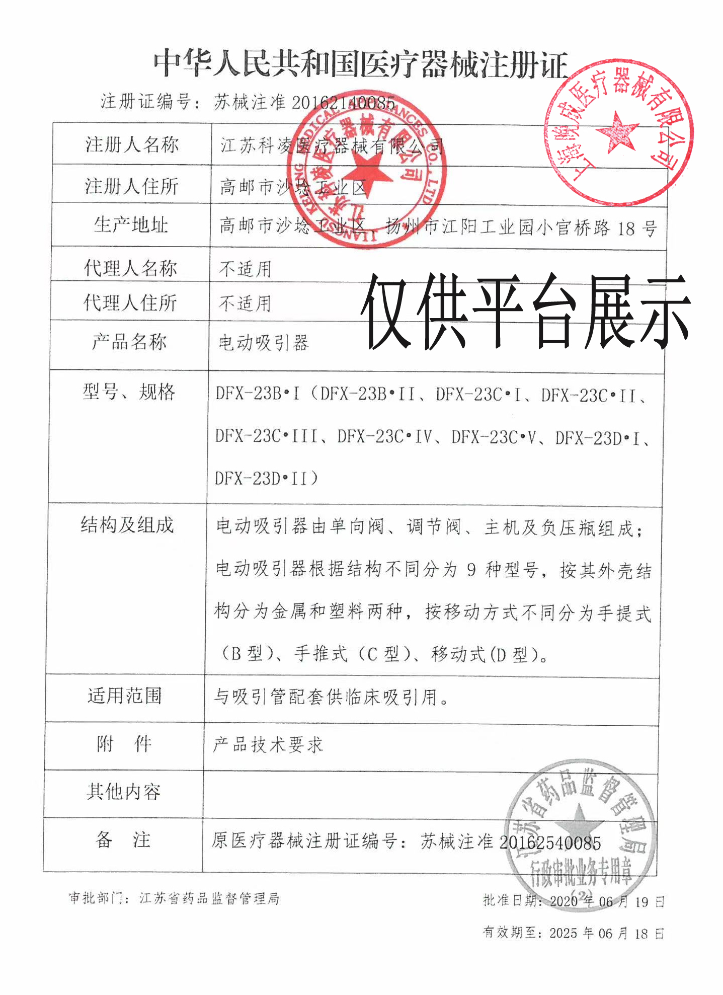 注冊(cè)證號(hào):蘇械注準(zhǔn)20162140085