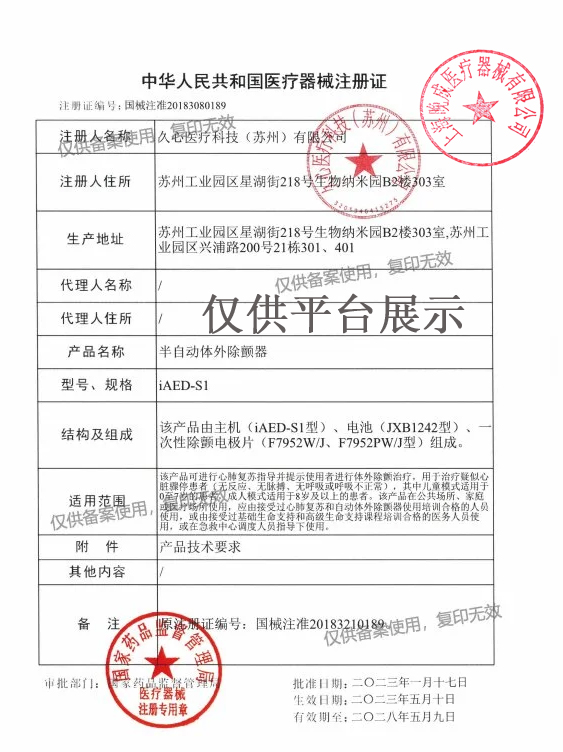 久心醫(yī)療 AED 半自動(dòng)體外除顫器 iAED-S1 參數(shù)