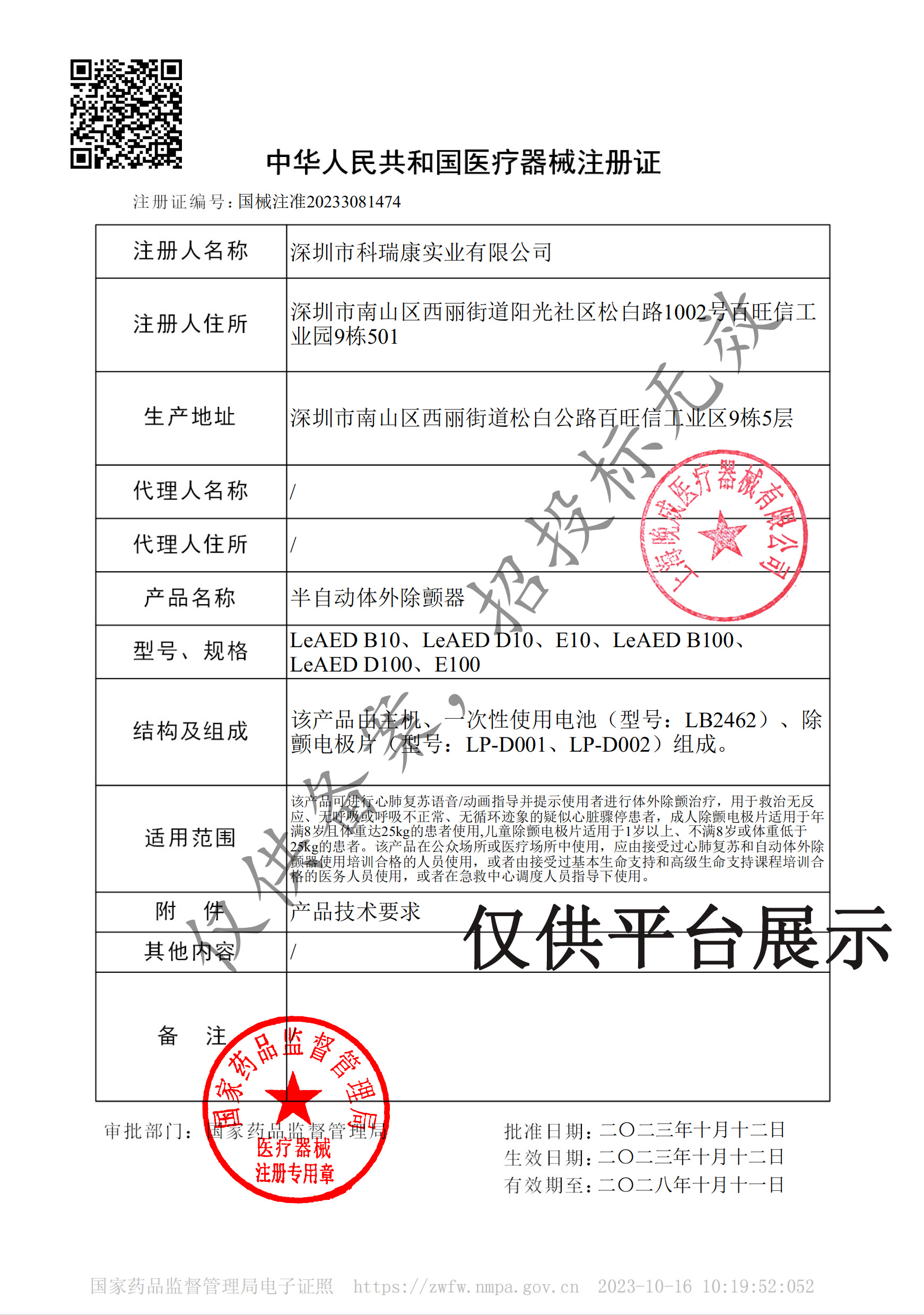 | 產(chǎn)品名稱 : | 樂普醫(yī)療 半自動體外除顫器LeAED B100便攜急救 帶屏幕 |