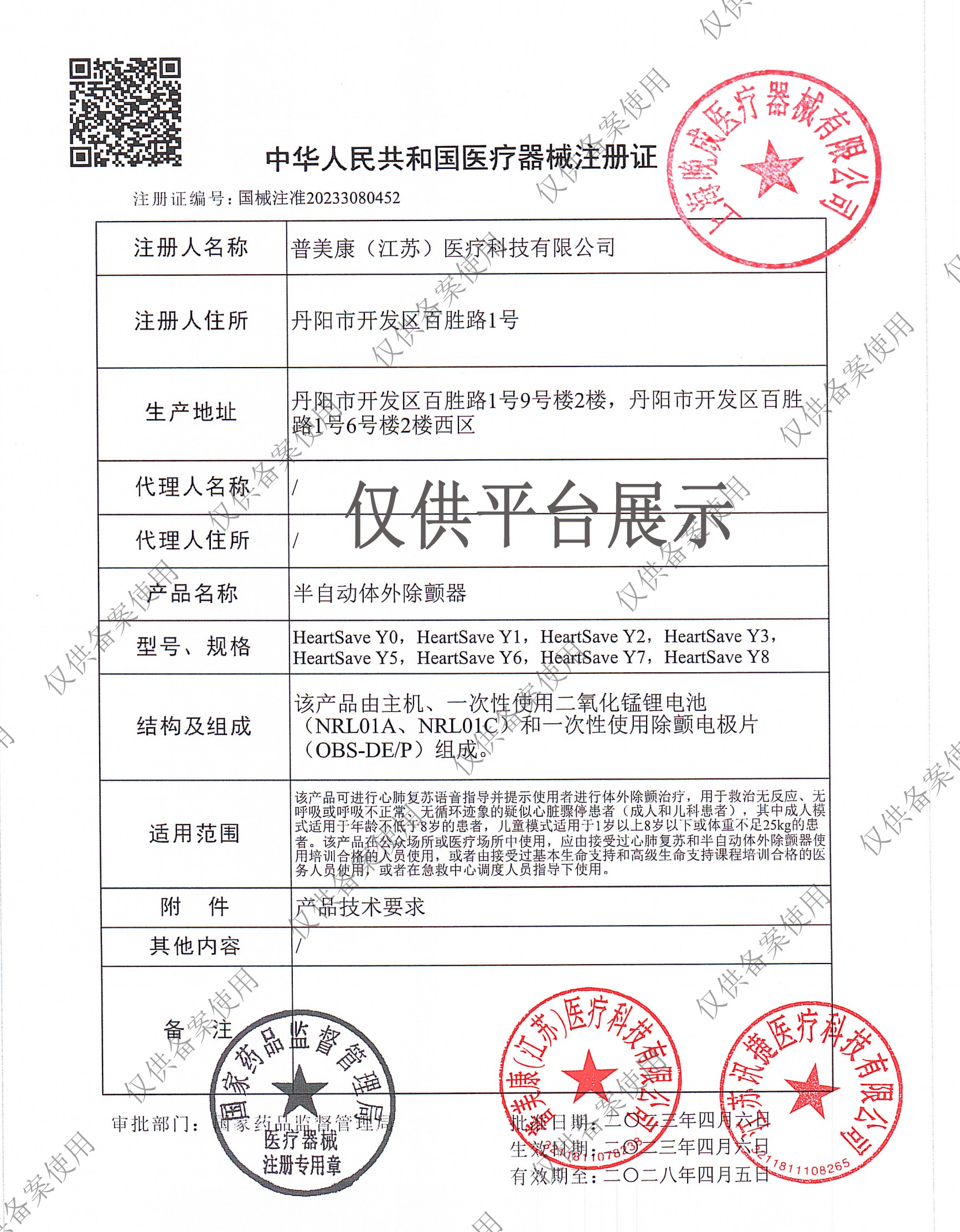 普美康 HeartSave Y5技術(shù)參數(shù)